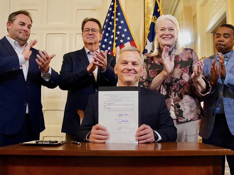 KC: I would say early on, the long-range capital plan that we developed for Macon County Schools wound up being carried on for, you know, 30-plus years. All the projects that we did while I was there, and then they continued to build a couple schools after I left. So I'm very proud of that…. I would say Macon County has probably got some of the most modern and sufficient schools in the state. We had the vision to build a recreation park, and that was built while I was the county commissioner. That was one of the main projects that I worked on, had a vision for it. And that was completed in 2015 before I went to the legislature. And it's a large park; it has eight, baseball/softball fields, basketball courts, picnic areas, a boat ramp into the local creek there, walking trails. It is just an, all around great park. In the legislature, it's hard to say because you’ve worked on so many things. But this is current – (on July 1), Governor Josh Stein signed my Senate Bill 124, and that’s a modernization of the state’s hiring. I was the primary author of that. I worked with the State Employees Association of North Carolina and worked with the state employment office as well. We worked, really overall, about two years on that. And I think everybody's pretty excited about that. We’ve got 2,000 jobs in the state that are unfilled and, coming up, 25 percent of our state workforce is within five years of retirement. It’s not the 1960s and ‘70s anymore, and we had really had not updated, or upgraded rather, our state hiring practices in many years. So this is a modernization of that. That was a big one. Of course, I wrote the Fairness in Women's Sports Act, which keeps men from playing in women’s sports. That one was some controversy at the time, but about 90 percent of folks told me they believe that's the right thing to do. We were one of the first states to address it. I worked on Medicaid expansion. I was one of the ones in the Senate. At the time, I was health committee chair; I’m education chair now. But we worked on expanding Medicaid to about 600,000 new folks and I think that was pretty groundbreaking, too. We did it without costing the state any money. It was good for the public, it was good for the providers. It was good for the people who got insurance that had not had it before. And a lot of people worked on that. That wasn't just my deal, but I helped lead the charge on that.