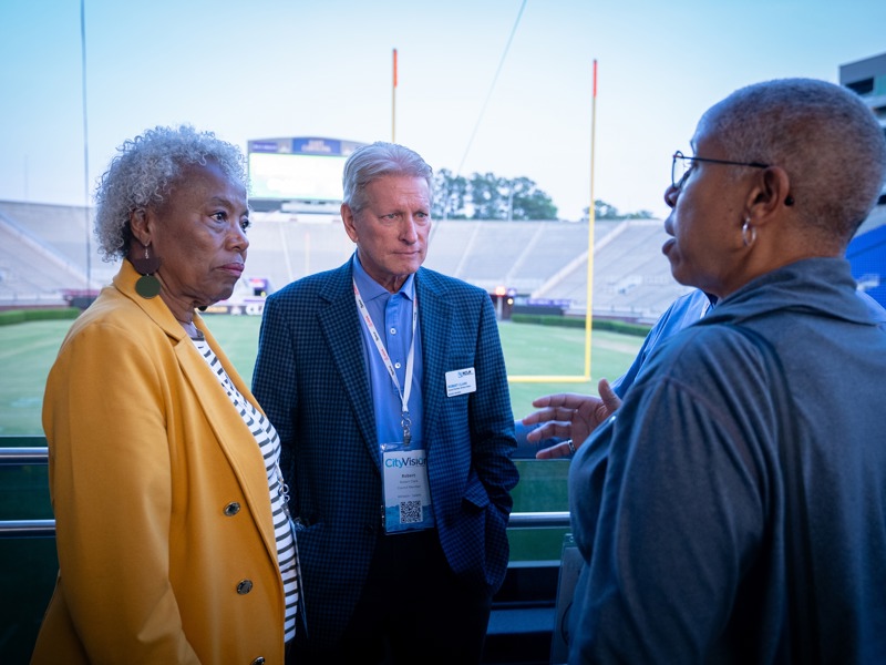“The biggest economic success is our work with Wake Forest University in the biotech area,” Clark said. “We took all of our old, empty tobacco plants, and they’re now high-tech biotech research-and-development” spaces. Caterpillar also runs a massive manufacturing plant in the city. Clark said the local rail lines were a key to that recruitment: “One thing I’ve learned in economic development is that most big folks with major investments have specific criteria for what they want. They tell you what they’re looking for, and you respond.”